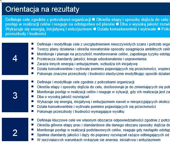 Opracowujemy też modele "sztywne", w których wskaźniki każdej kompetencji rozpisane są na kilkustopniowej skali.